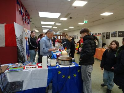Mit der Crêpe-Platte des Vereins kommt auch in diesem Jahr eine Extraportion französisches Flair in die Schule. Der Duft frisch gebackener Crêpes macht Lust auf Fremdsprachen – und auf Begegnungen in Europa. Am Stand informiert der Verein über die Städtepartnerschaften und gibt Einblicke in gemeinsame Projekte und internationale Begegnungen.
