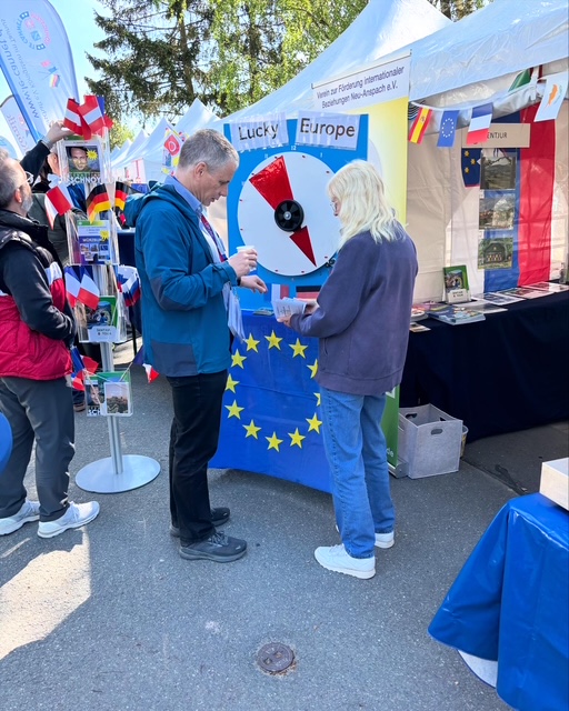 Auch der VzFiB – Verein zur Förderung Internationaler Beziehungen Neu-Anspach e.V. – war mit einem Stand vor Ort. Neben Informationen zu den Neu-Anspacher Städtepartnerschaften mit Saint-Florent-sur-Cher (Frankreich), Thalgau (Österreich) und Šentjur (Slowenien) gab es am VzFiB-Stand kulinarische und spielerische Angebote: Frisch gebackene Crêpes lockten ebenso wie ein Glücksrad, und anlässlich des 51-jährigen Jubiläums der Partnerschaft mit Thalgau wurden originale Mozartkugeln verschenkt – kleine, aber symbolträchtige Zeichen gelebter Verbundenheit.
